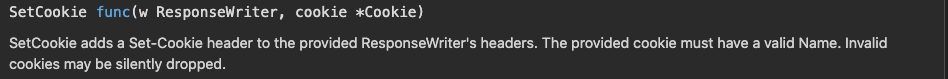 - クッキーはレスポンスにセットするので、パラメータとしてResponseWriterとクッキーのポインタを受け取ります。
