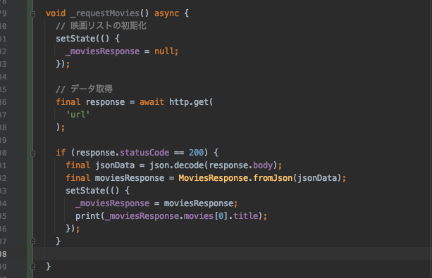 - 上記のようにfromJsonを設けることで、使う時には「MoviesResponse変数名.id」のように使うことができます。