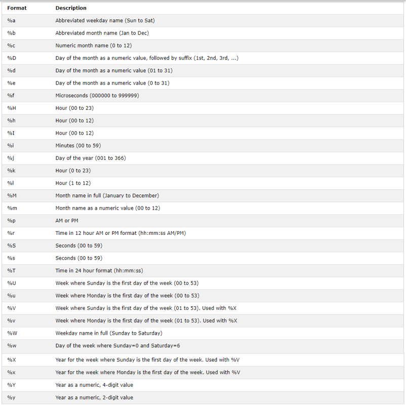 DATE_FORMATを利用すると以下の画像のようにいろんな形で変換することができますが、今回は「年月日」だけにしたいと思います。