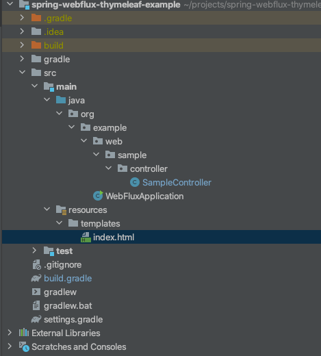 サンプルコードはSpringboot+WebFlux+Thymeleaf+Gradleです。