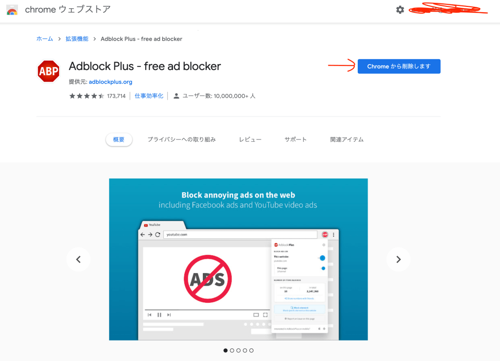 - 「adblock plus – free ad blocker chrome」で検索します。